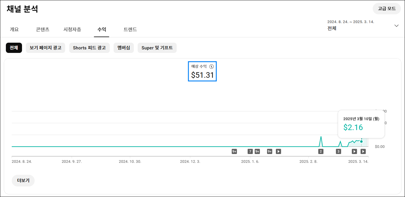 유튜브 수익화는 이제 시작 단계지만, 다양한 수익 모델을 실험하며 최적화할 계획입니다.