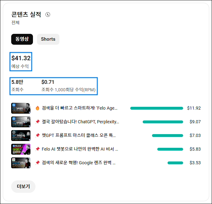 | AI 수익화-3차 리뷰 | AI를 활용한 유튜브 수익화, 대박 가능성? 조회수 84만 vs 수익 $6.63의 현실! (8) | 2025.03.16 |