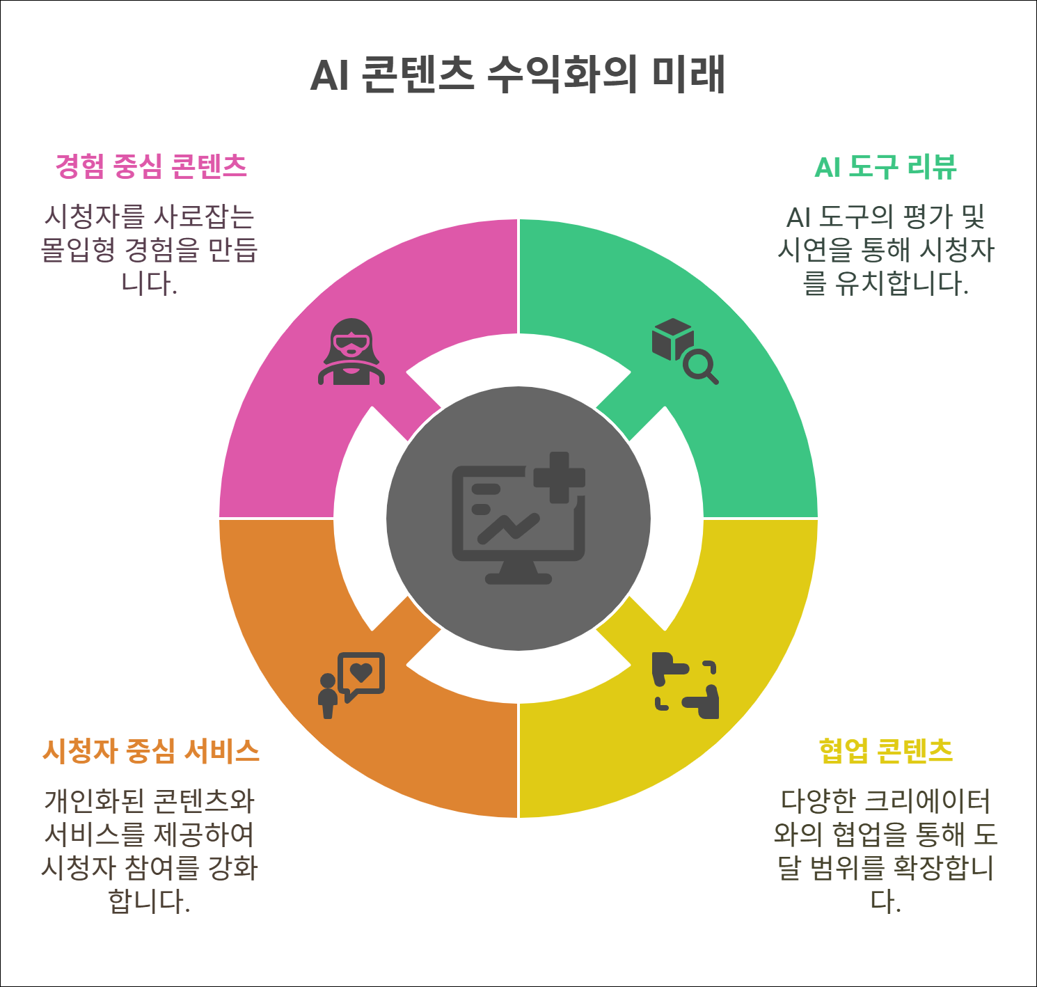 지금은 수익화의 출발점에 불과하며, AI 콘텐츠 시장은 앞으로 더 많은 기회를 열어줄 것입니다. AI 기술의 발전 속도를 고려할 때, 다양한 AI 툴과 협업형 콘텐츠 포맷, 그리고 시청자 중심의 커스터마이징 서비스가 새로운 수익 모델로 이어질 가능성도 매우 큽니다. 앞으로는 단순한 정보 전달에서 한 걸음 더 나아가, ‘경험’과 ‘참여’를 유도하는 콘텐츠가 AI 수익화의 핵심으로 자리 잡을 것입니다.