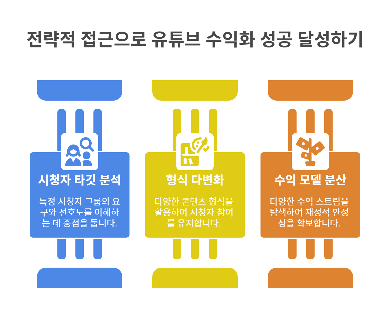 중요한 것은 단순히 콘텐츠를 올리는 것이 아니라, 시청자 타깃 분석, 형식 다변화, 수익 모델 분산 등 전략적인 접근이 함께 이뤄졌을 때 성공적인 수익화로 이어질 수 있다는 점입니다. 이 과정에서 유튜브 알고리즘에 맞춘 콘텐츠 최적화, 시청자 참여 유도, 브랜드 일관성 유지 등 세심한 설계와 관리도 병행되어야 합니다.