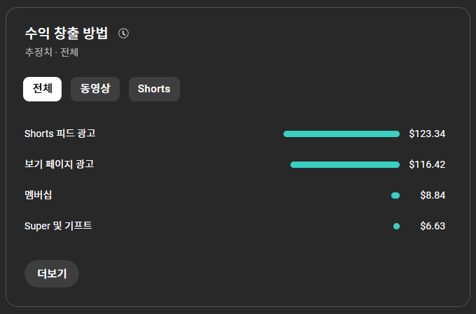 쇼츠는 짧은 길이와 자극적인 콘텐츠 구성으로 인해 빠르게 조회수를 끌어올릴 수 있는 형식입니다. 하지만 상대적으로 짧은 시청 시간과 낮은 광고 단가 때문에 수익률은 낮은 편이죠. 특히 흥미로웠던 점은 단 하나의 쇼츠 영상이 전체 쇼츠 수익의 98% 이상을 차지했다는 것입니다. ‘알리가 김일성? 응원 논란의 진실’이라는 콘텐츠 하나가 $120 이상을 벌어들였고, 이는 쇼츠의 파급력을 잘 보여주는 예시입니다.