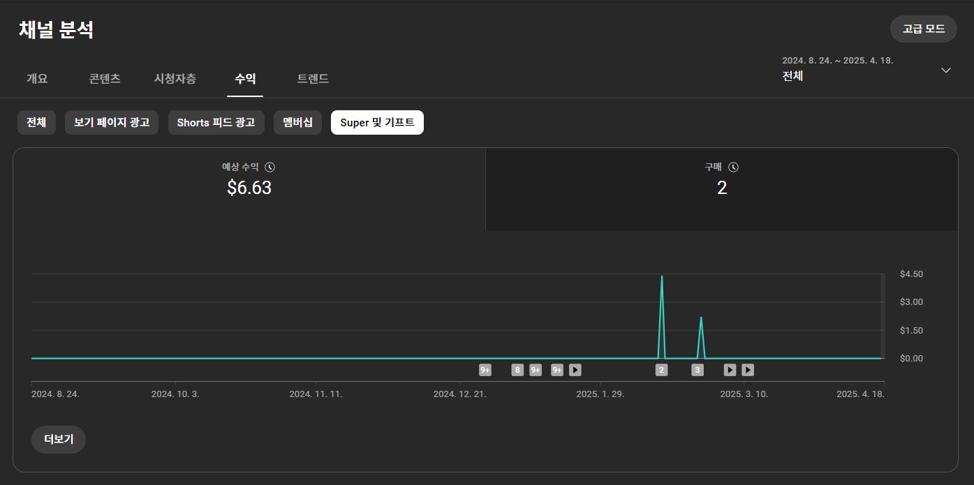 - 슈퍼챗 & 기프트: $6.63