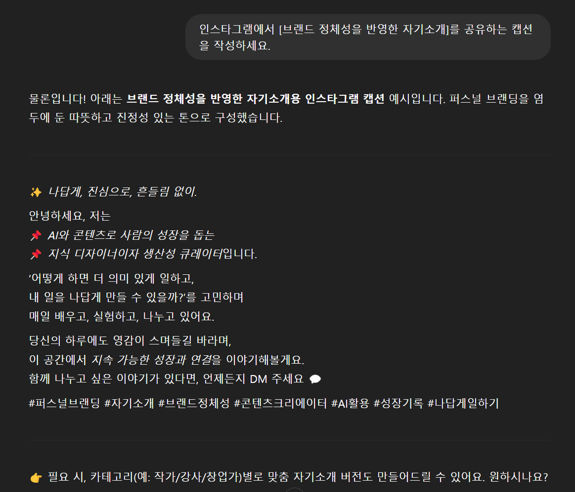 이제 아래 프롬프트만 따라 써보면, 여러분의 브랜딩 콘텐츠가 살아납니다!