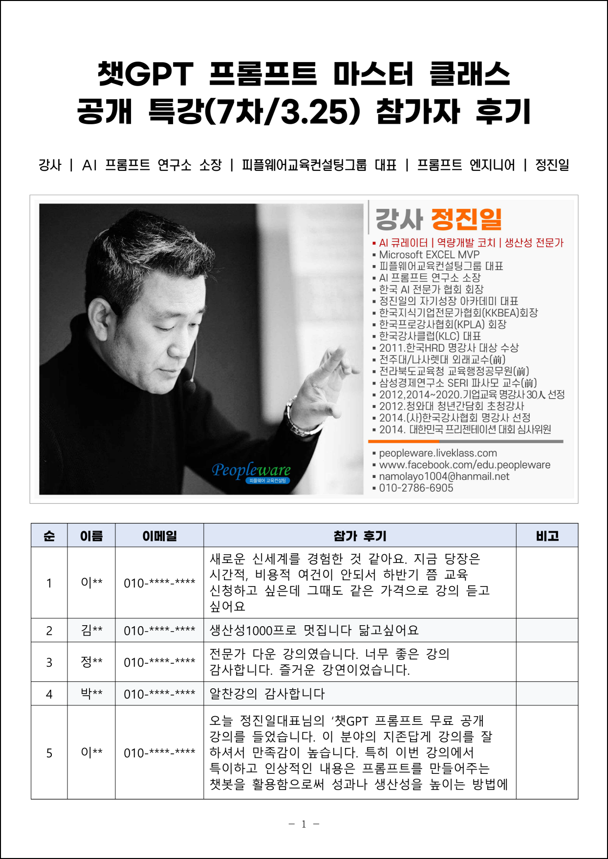 프로필 | AI 프롬프트 연구소 소장 | 피플웨어교육컨설팅그룹 대표 | 자기성장 아카데미 대표 | 202