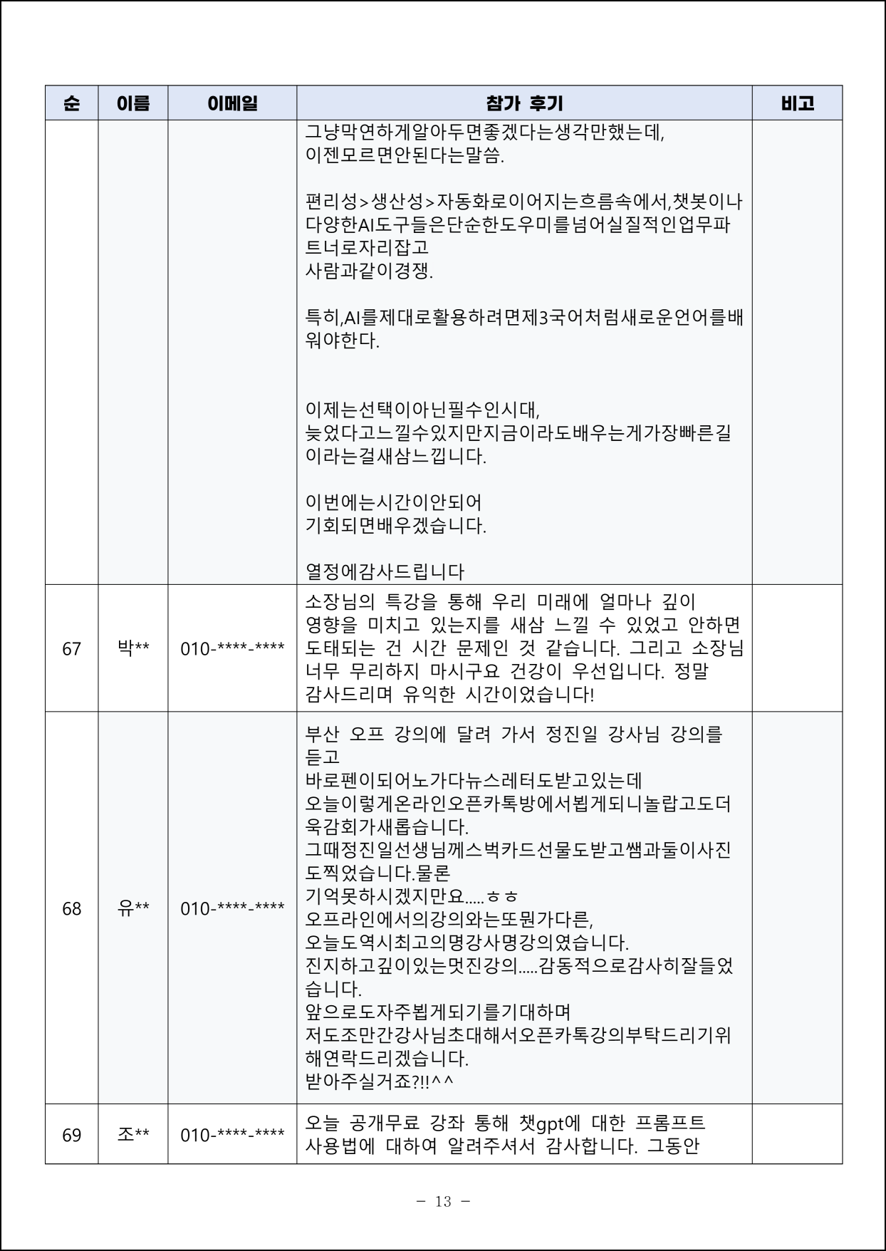 - AI를 활용한 생산성 향상 및 디지털 역량 개발 강의